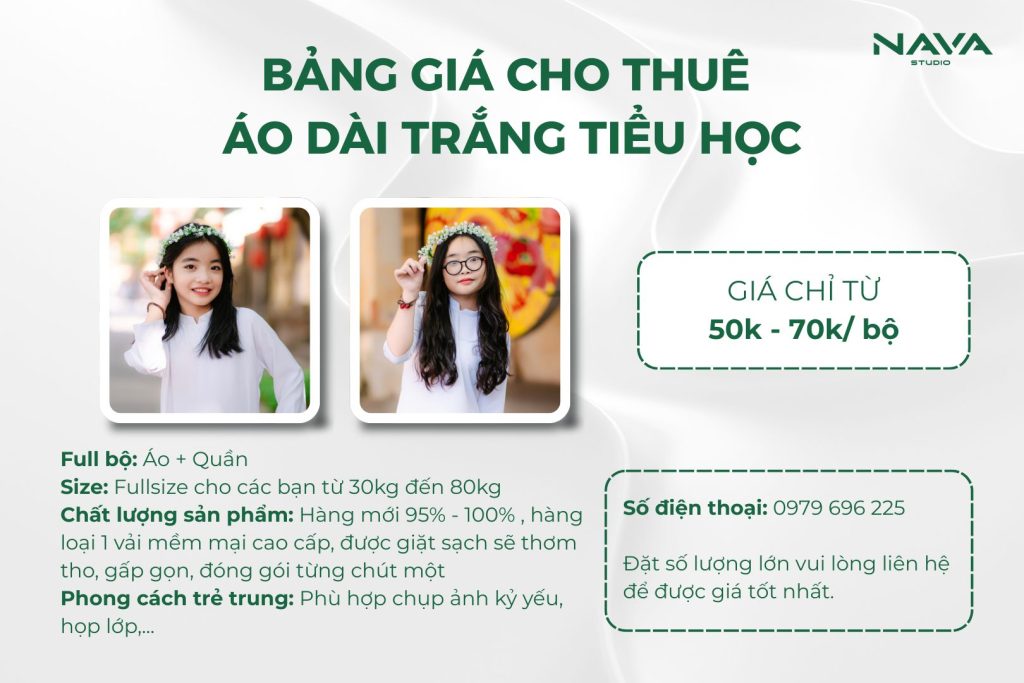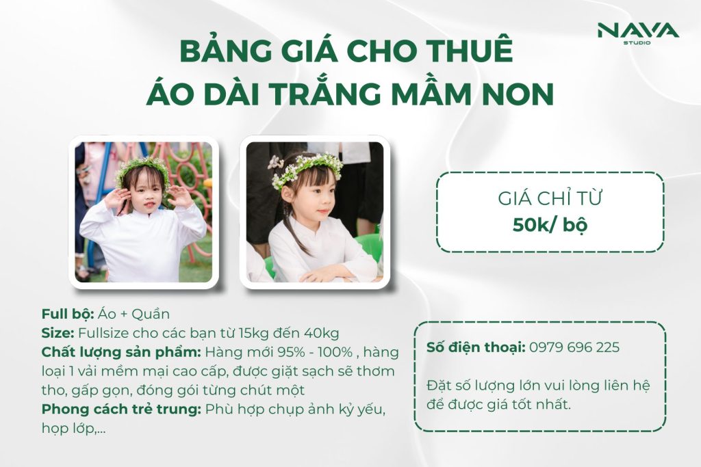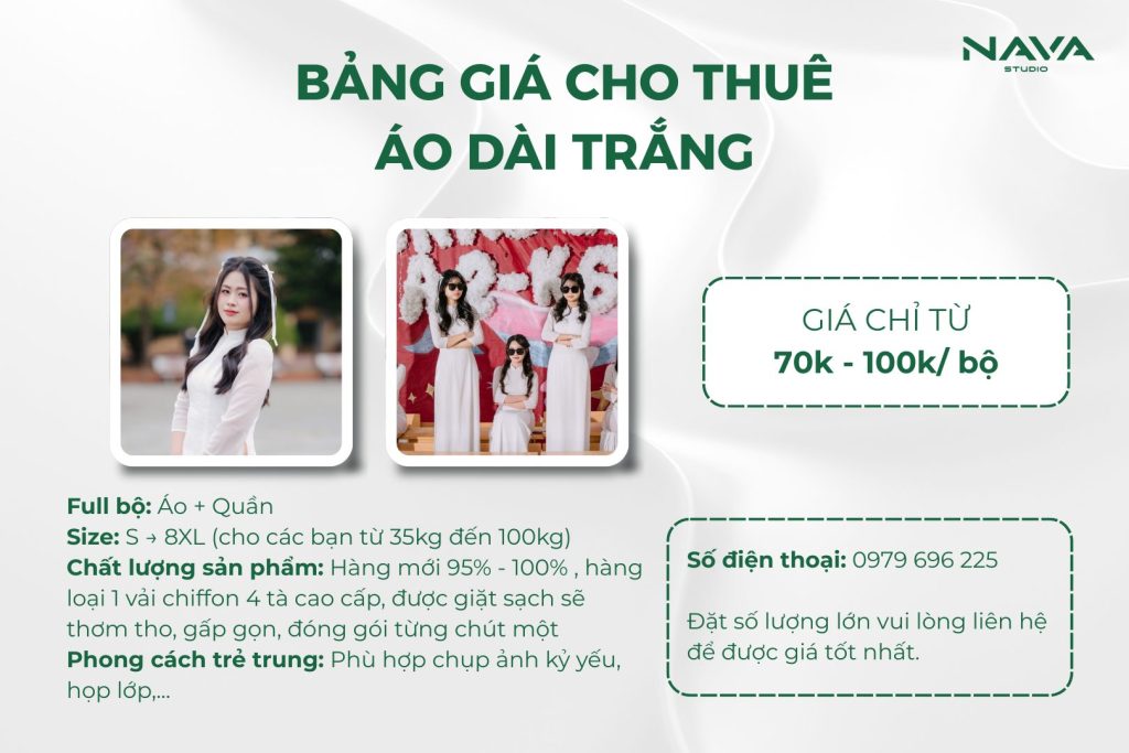 ✪ Nava Studio không chỉ là nơi chụp ảnh, mà còn là nơi đồng hành cùng bạn từ những chi tiết nhỏ nhất. Từng mẫu áo dài trắng được tuyển chọn kỹ lưỡng về form dáng, chất liệu và độ mới – đảm bảo lên ảnh đẹp, mặc ngoài đời cũng chuẩn. Chúng tôi tin rằng, vẻ đẹp không nằm ở sự cầu kỳ, mà đến từ sự vừa vặn, tinh tế và đúng thời điểm.